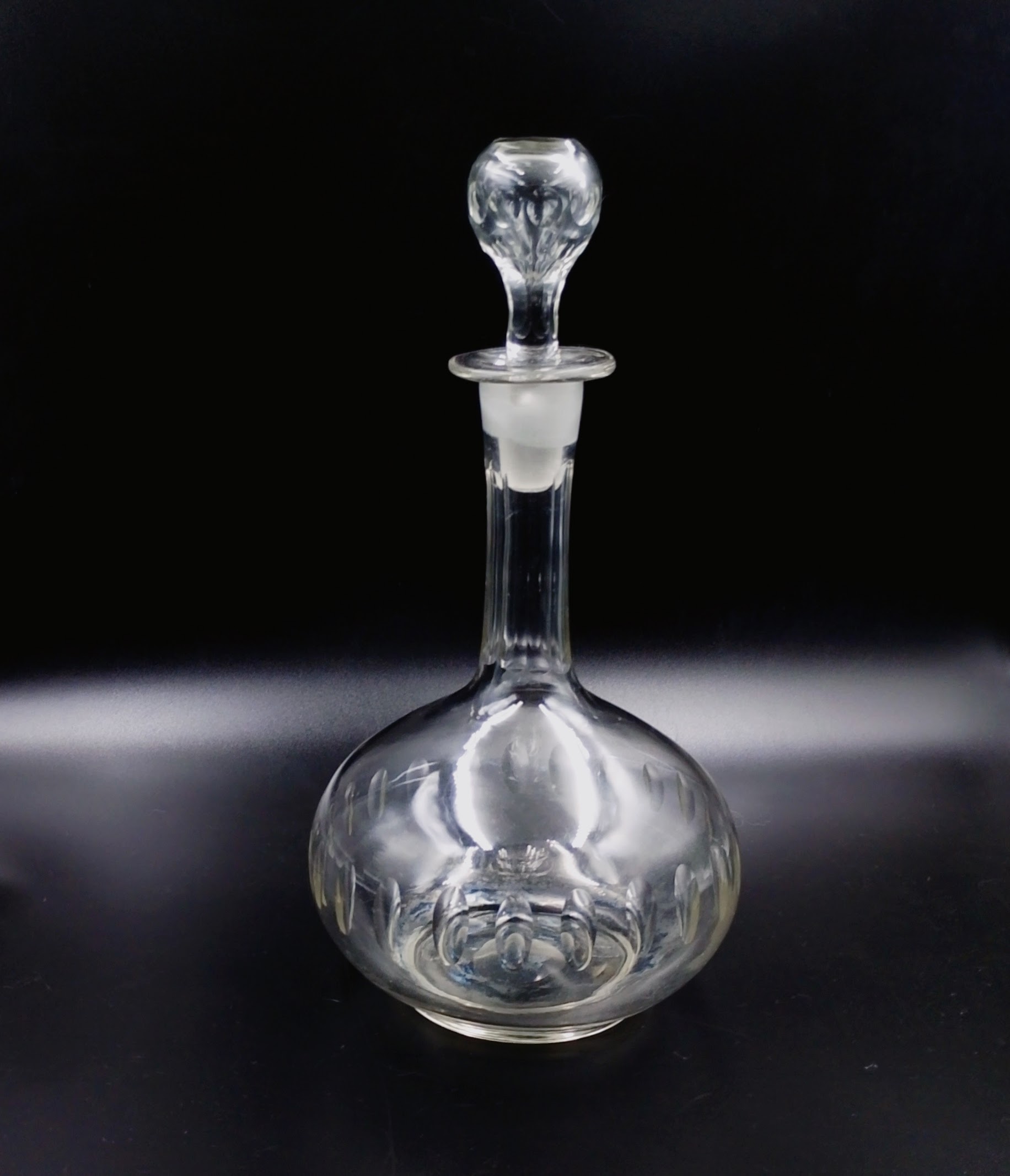 Kryształowa karafka o wydłużonej szyjce, wyrób z końca XIX w/początku XX w. najpewniej przedwojenne polskie szkło (Hortensja lub Zawiercie ?)