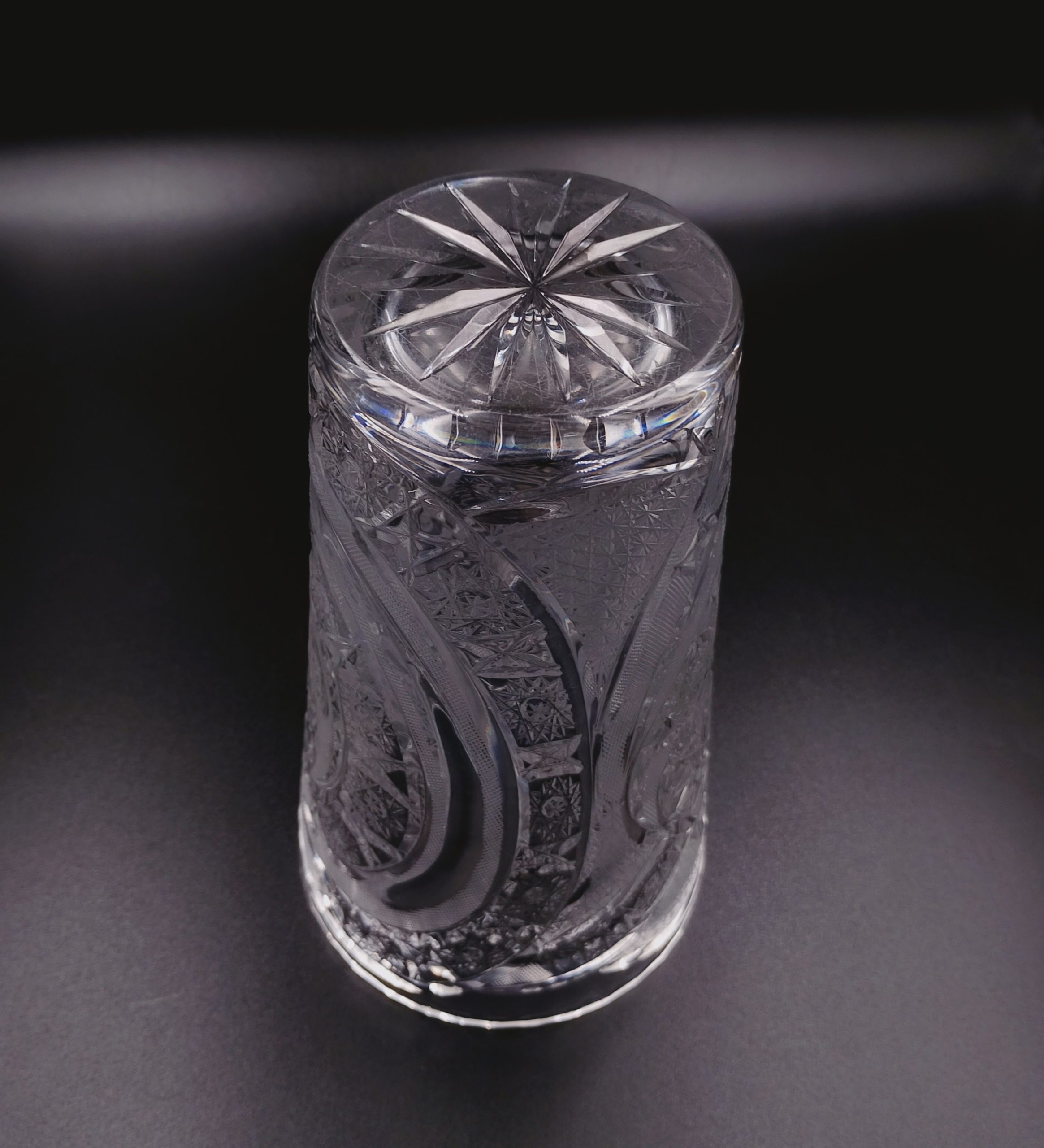Wazon sam w sobie jest świetną ozdobą, która rozświetli każdy stół nadając mu klasycznego i eleganckiego wyglądu, świetnie też będzie prezentować się na półce, stanowiąc dostojną ozdobę. Spód szlifowany na gładko również z motywem szesnastoramiennej gwiazdy.